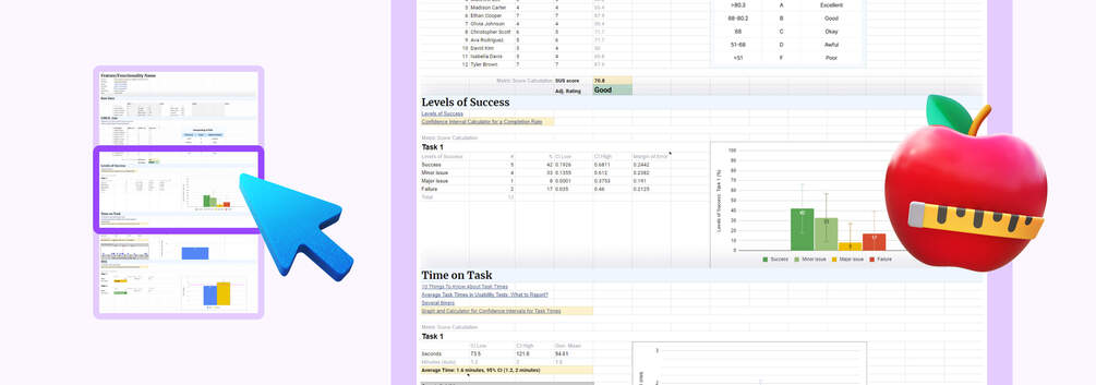 This template features a scorecard that streamlines the calculation of the following UX metrics: UMUX-Lite, Success Levels, Time on Task, and SEQ.